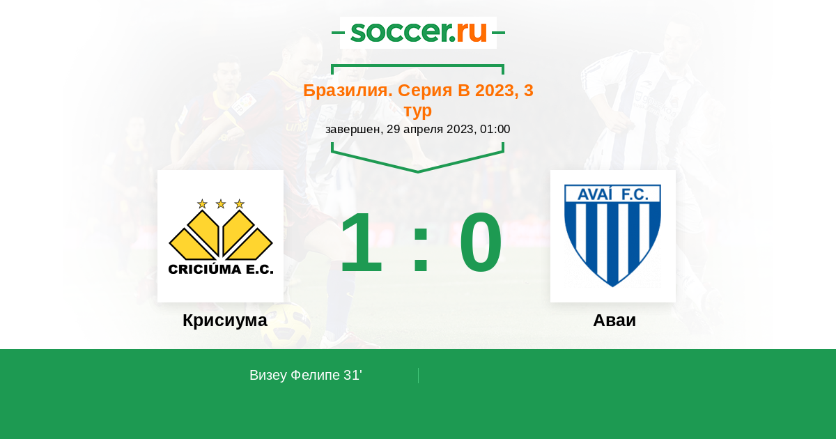 Протокол матча Крисиума против Аваи