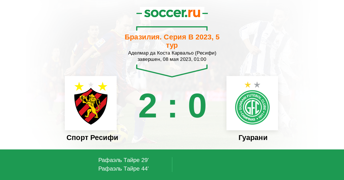 Протокол матча Спорт Ресифи против Гуарани