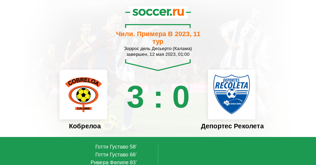 Протокол матча Кобрелоа против Депортес Реколета