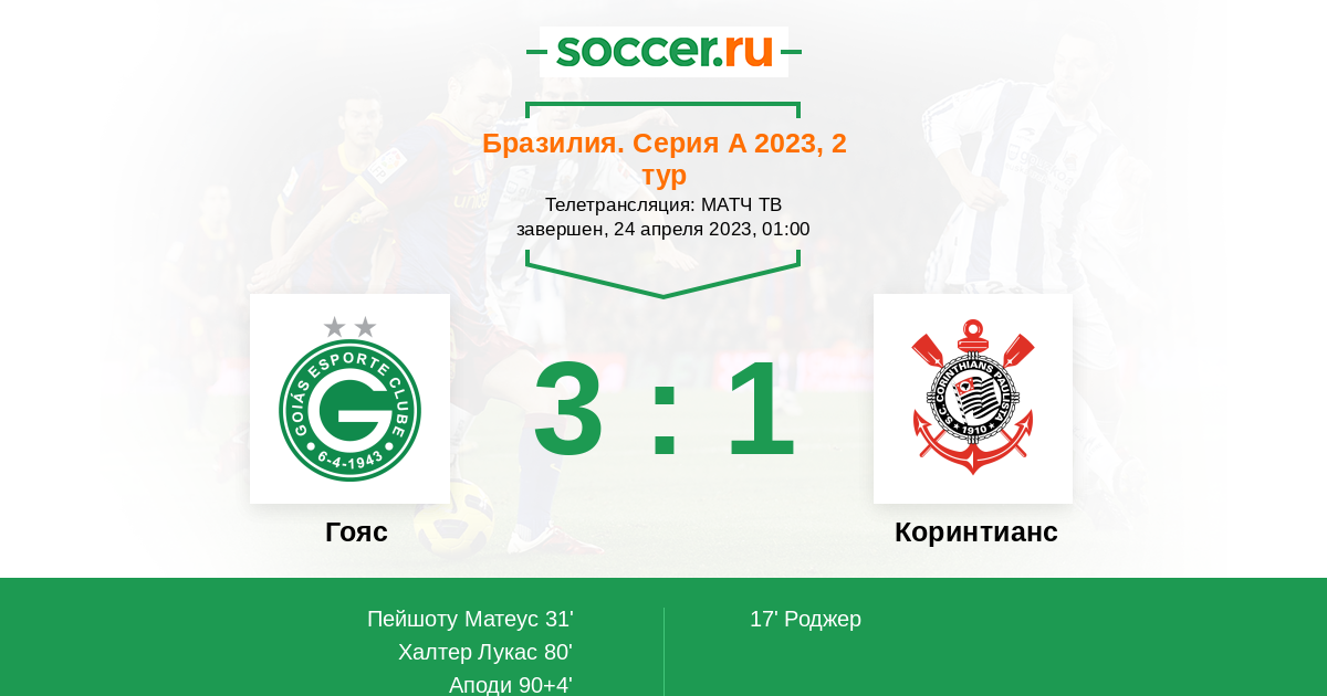 Протокол матча Гояс против Коринтианс