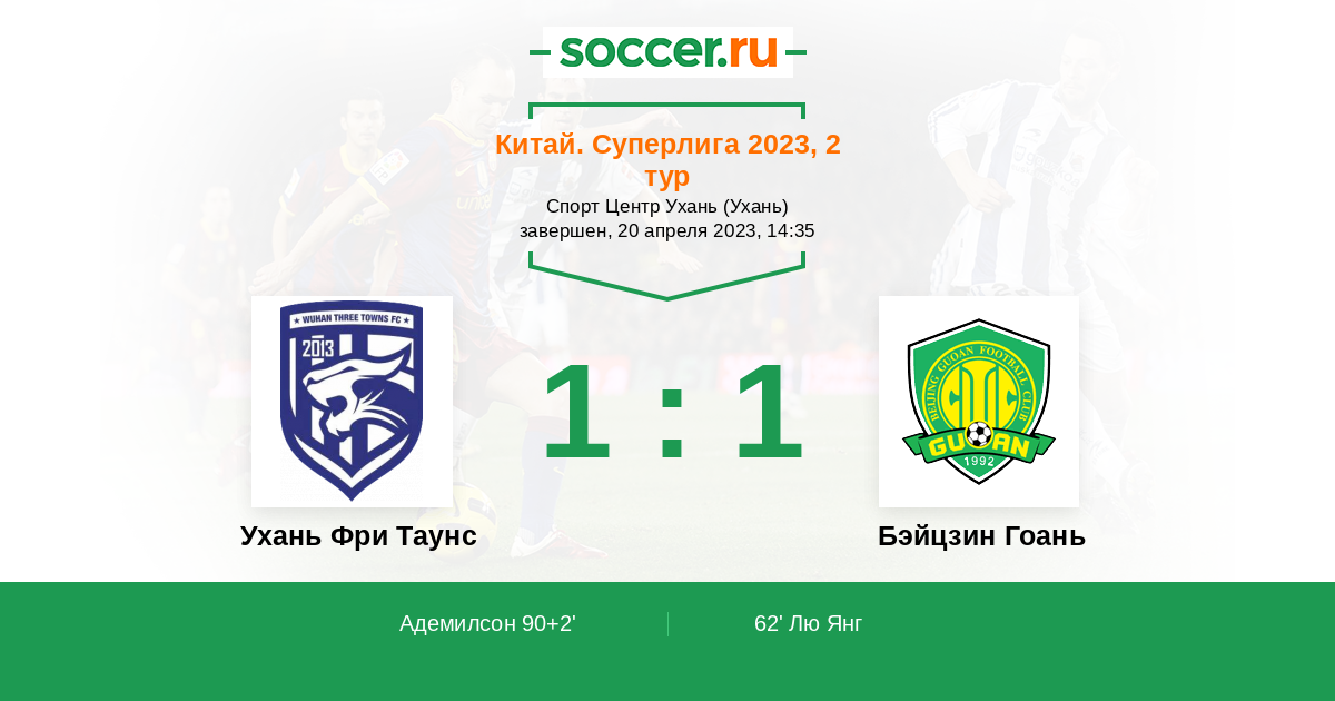 Протокол матча Ухань Фри Таунс против Бэйцзин Гоань