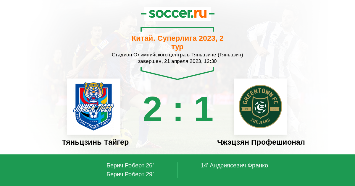 Протокол матча Тяньцзинь Тайгер против Чжэцзян Профешионал