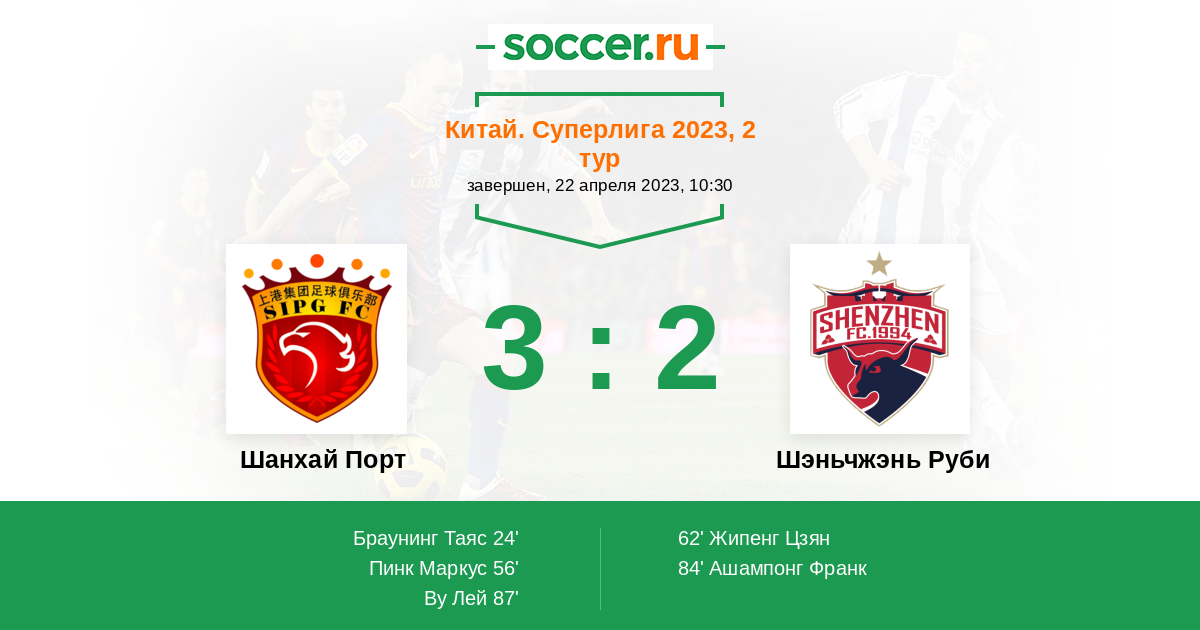 Протокол матча Шанхай Порт против Шэньчжэнь Руби