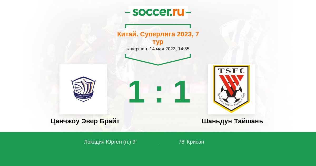 Протокол матча Цанчжоу Эвер Брайт против Шаньдун Тайшань