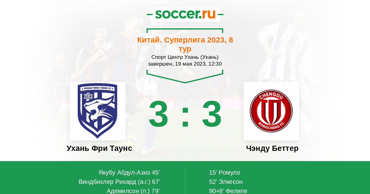 Протокол матча Ухань Фри Таунс против Чэнду Беттер