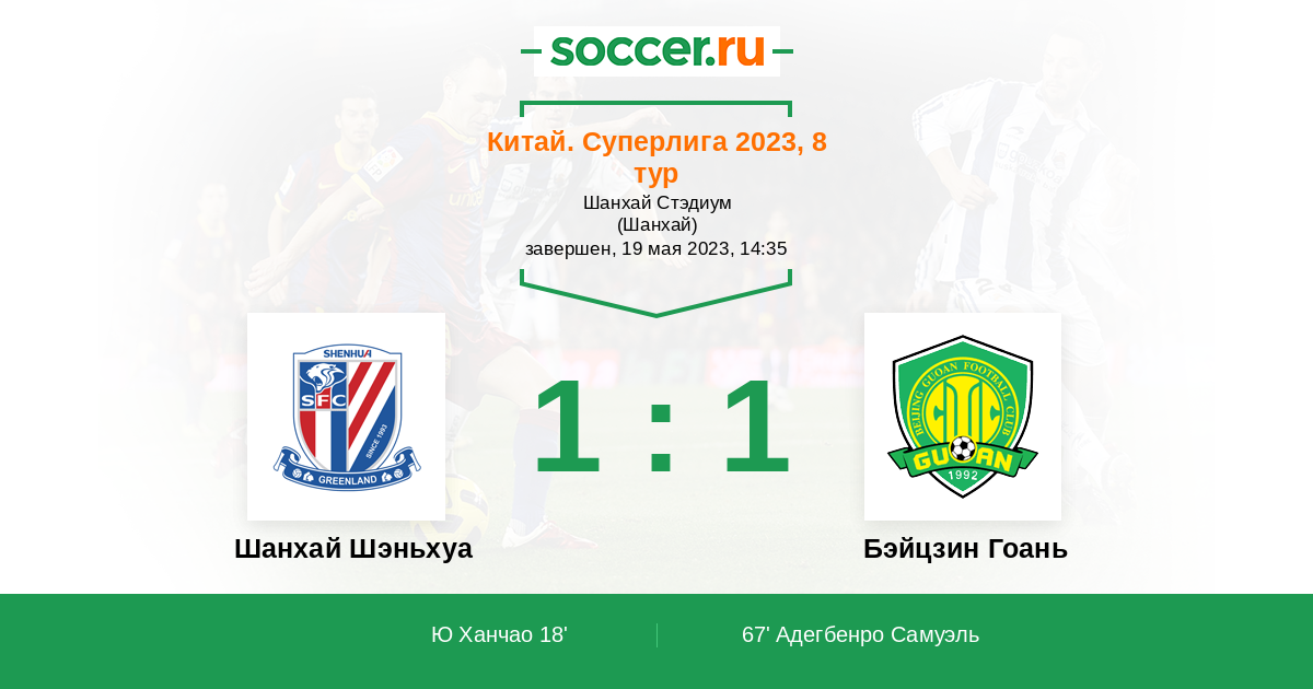 Протокол матча Шанхай Шэньхуа против Бэйцзин Гоань