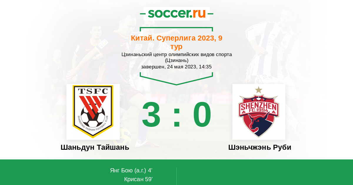 Протокол матча Шаньдун Тайшань против Шэньчжэнь Руби