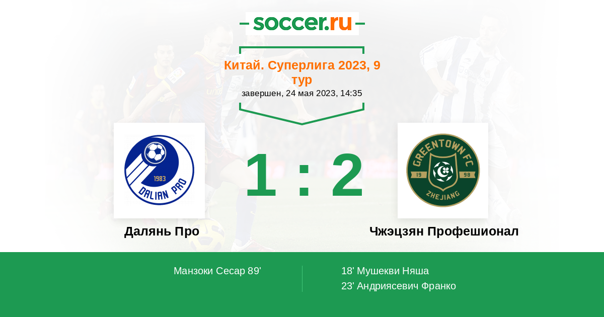 Протокол матча Далянь Про против Чжэцзян Профешионал