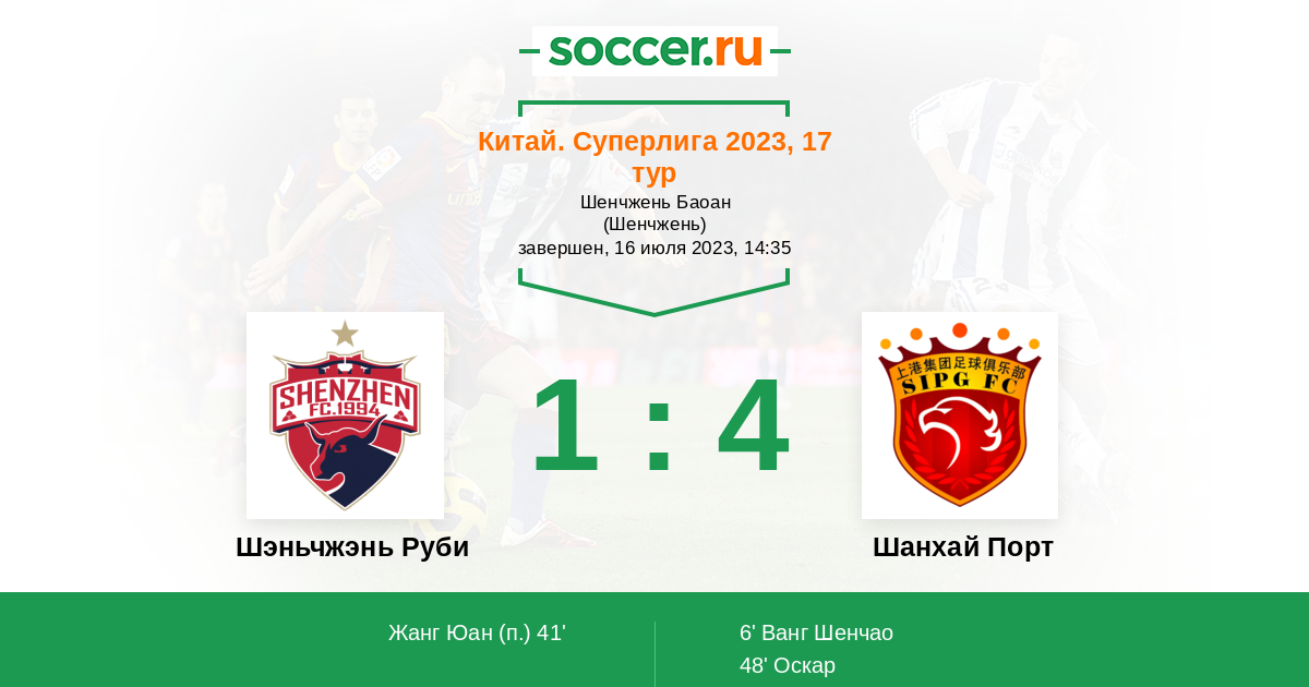 Протокол матча Шэньчжэнь Руби против Шанхай Порт