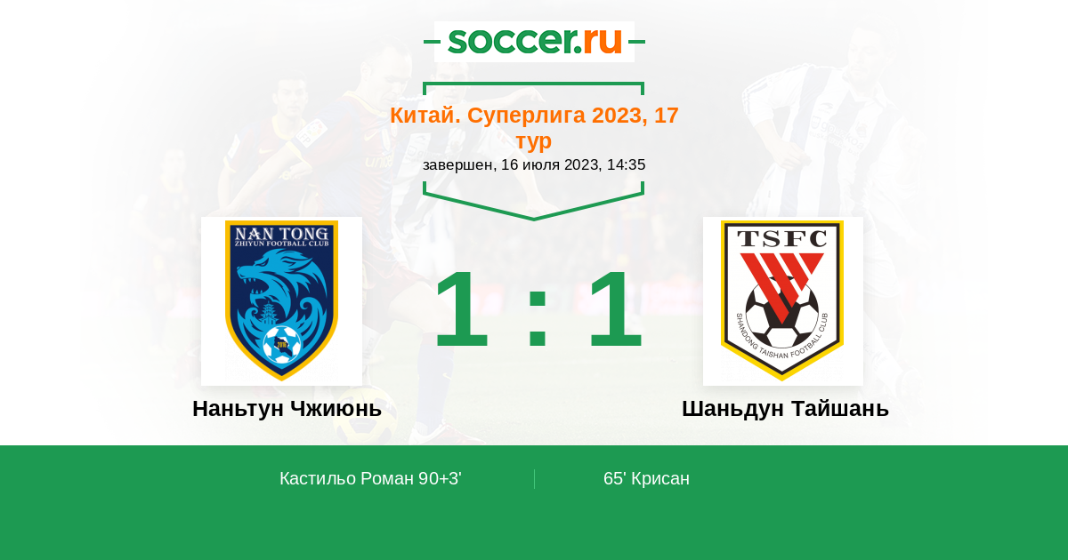 Протокол матча Наньтун Чжиюнь против Шаньдун Тайшань