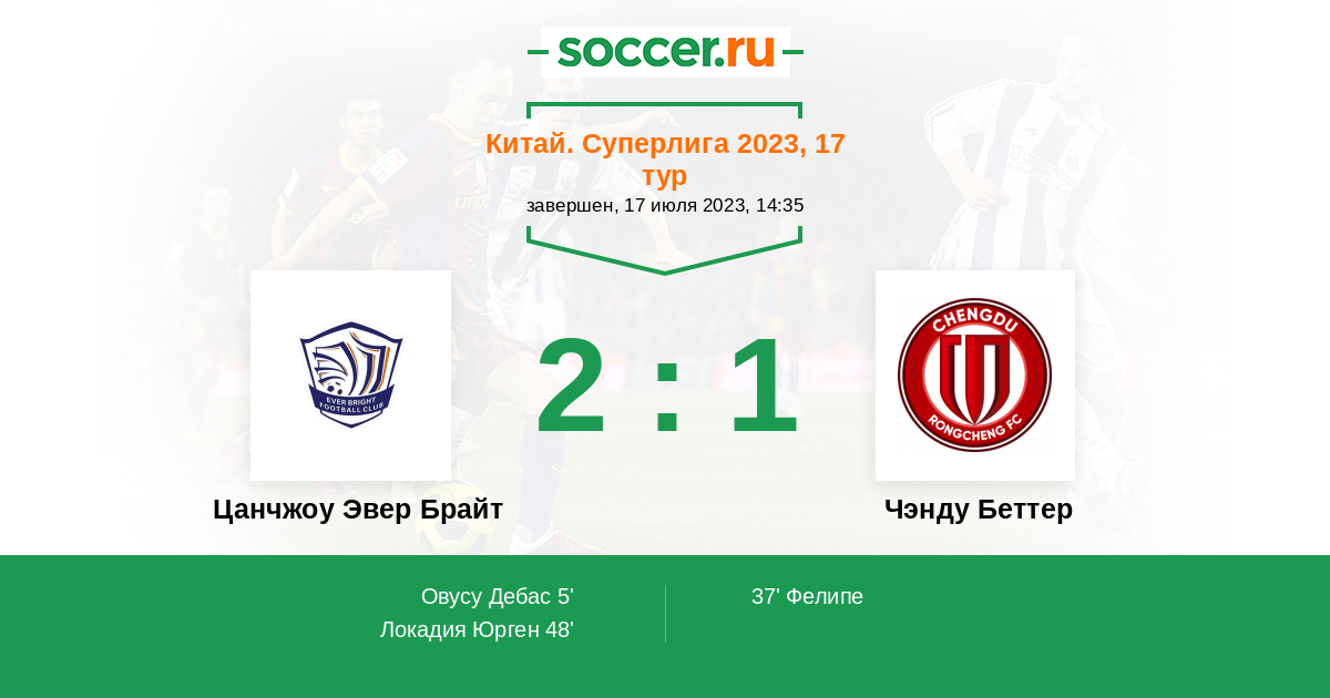 Протокол матча Цанчжоу Эвер Брайт против Чэнду Беттер