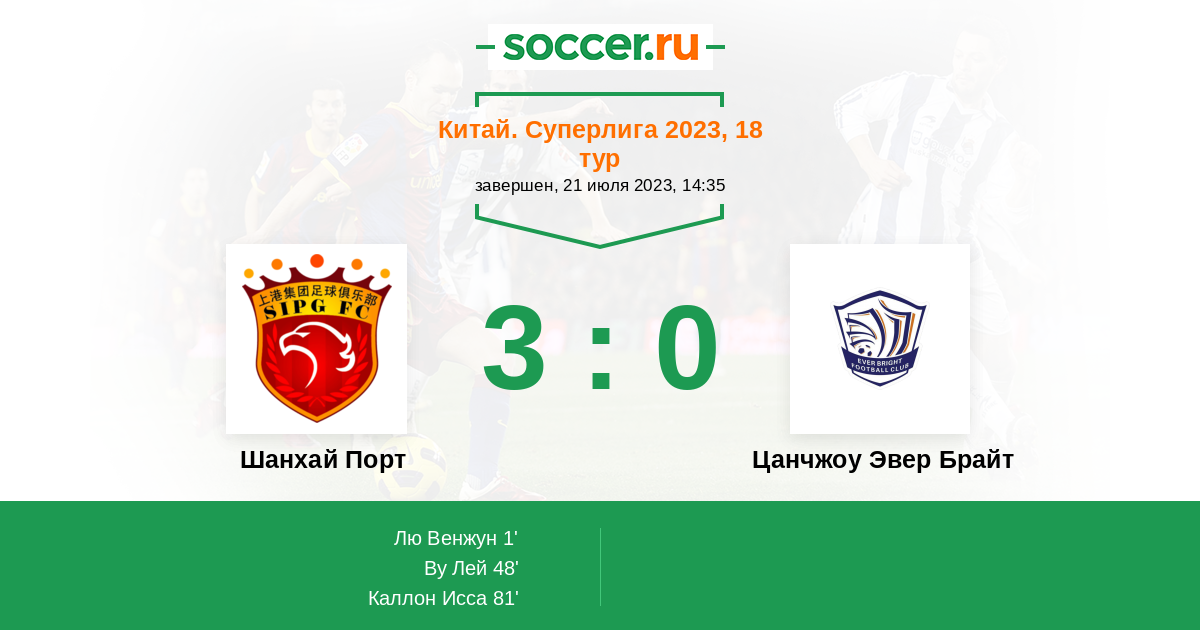 Протокол матча Шанхай Порт против Цанчжоу Эвер Брайт