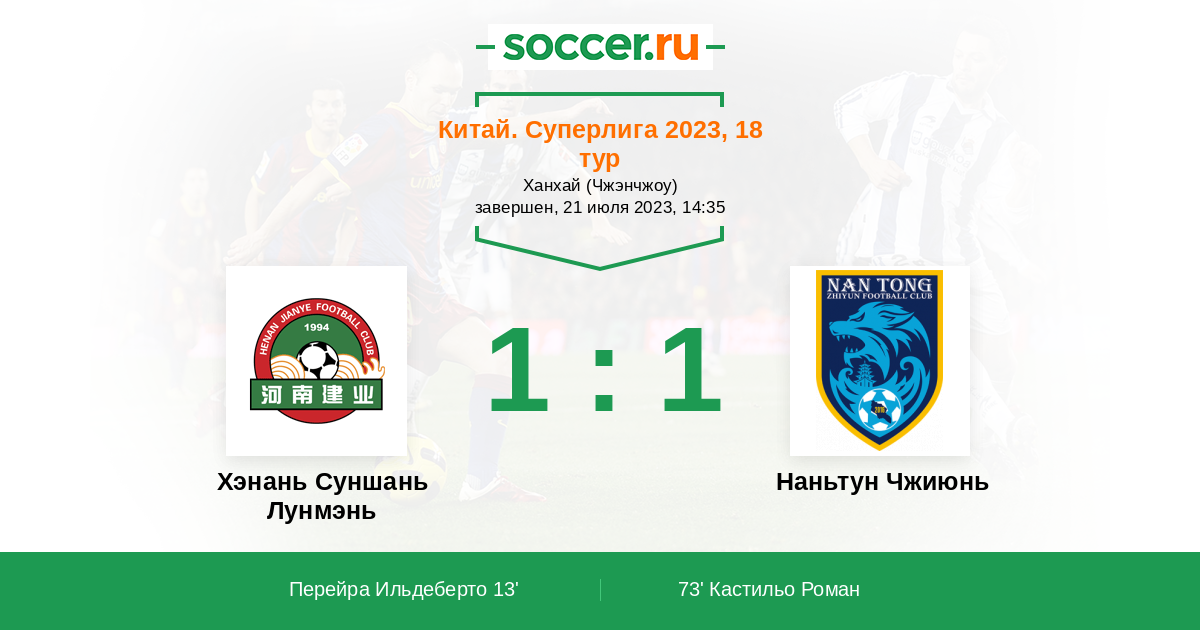Протокол матча Хэнань Суншань Лунмэнь против Наньтун Чжиюнь