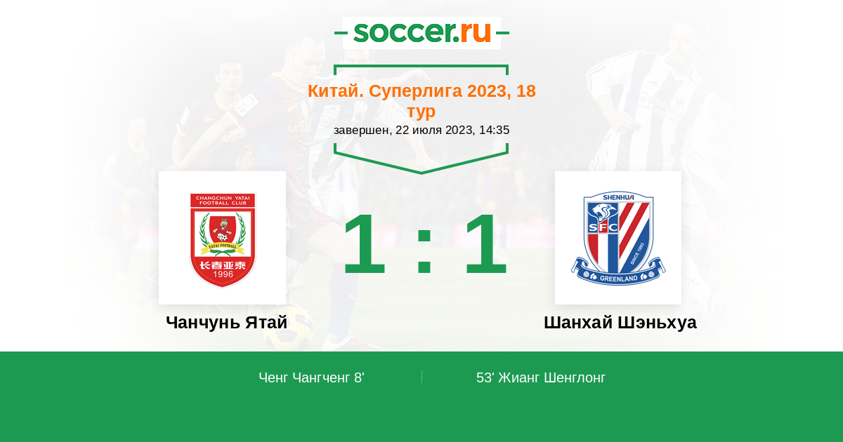 Протокол матча Чанчунь Ятай против Шанхай Шэньхуа