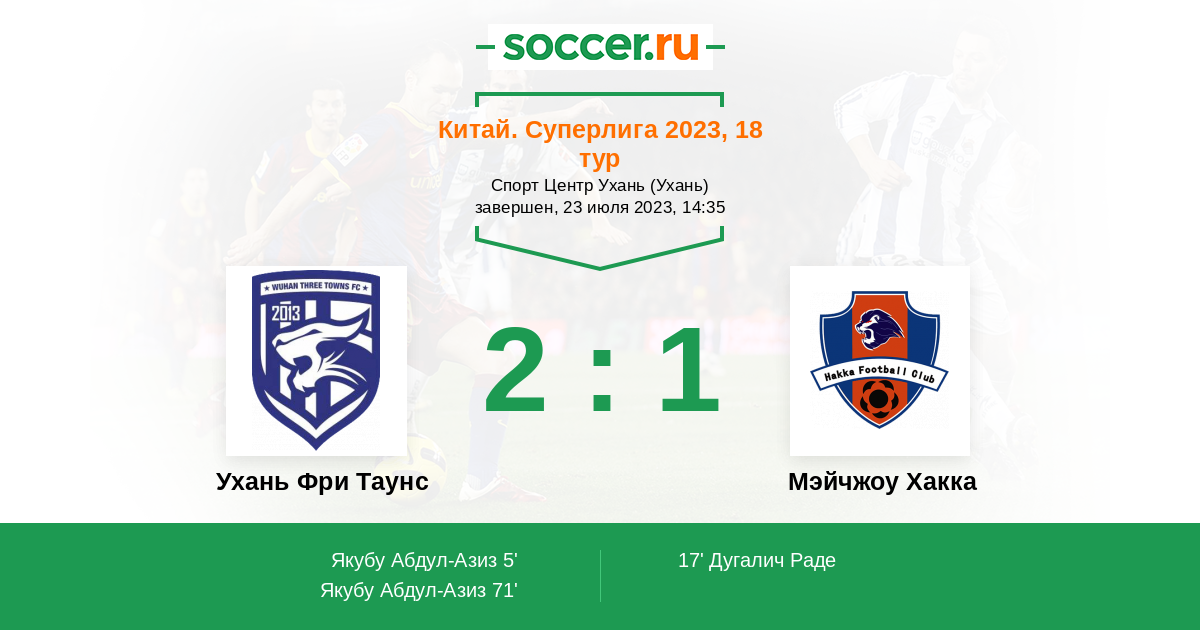 Протокол матча Ухань Фри Таунс против Мэйчжоу Хакка