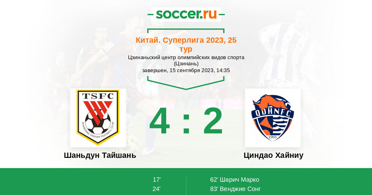 Протокол матча Шаньдун Тайшань против Циндао Хайниу