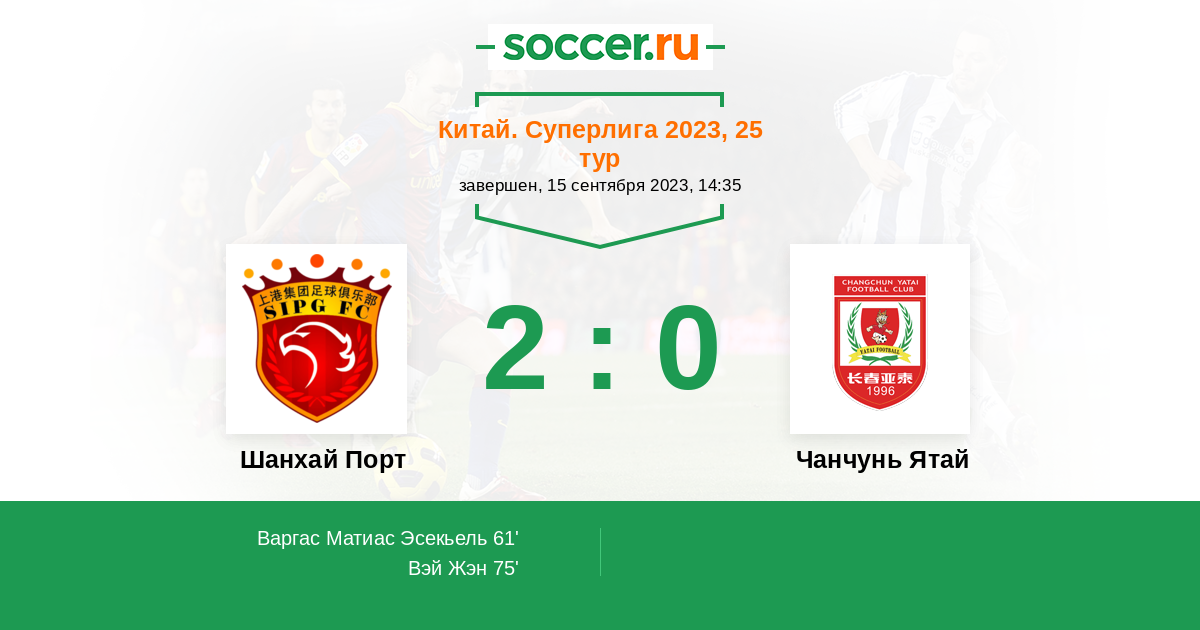 Протокол матча Шанхай Порт против Чанчунь Ятай