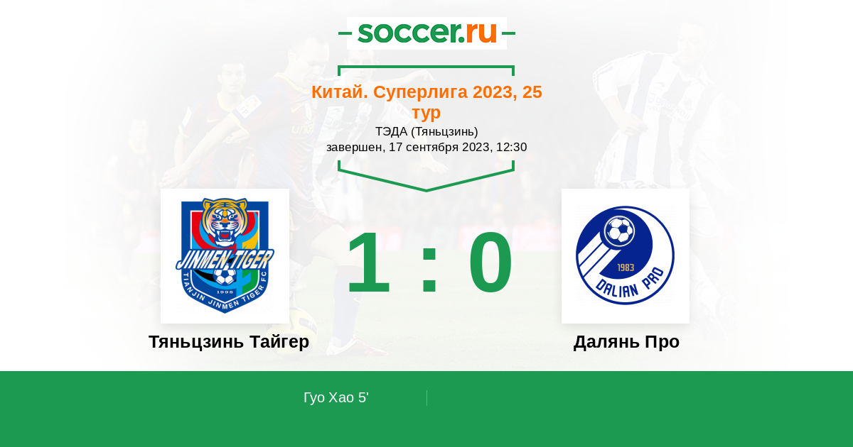 Протокол матча Тяньцзинь Тайгер против Далянь Про