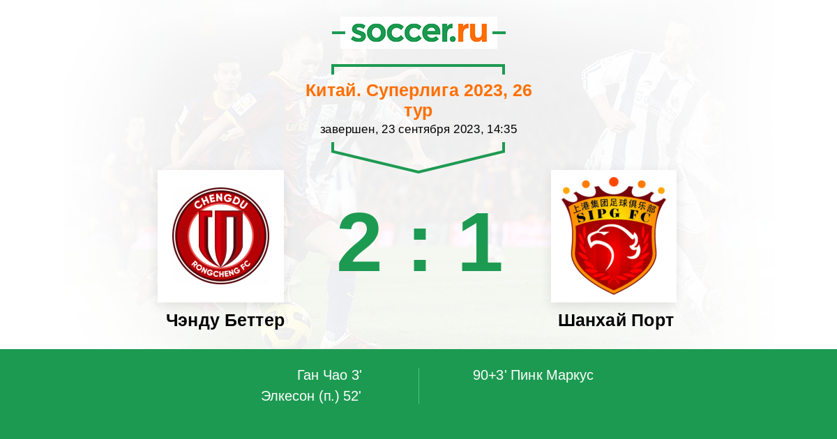 Протокол матча Чэнду Беттер против Шанхай Порт