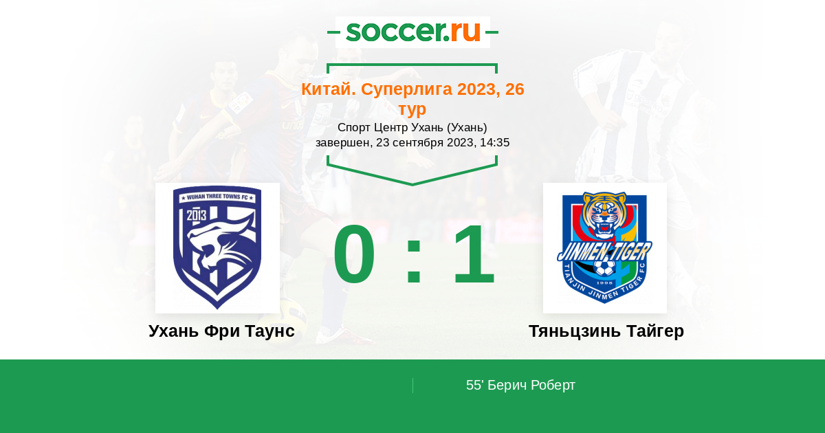Протокол матча Ухань Фри Таунс против Тяньцзинь Тайгер