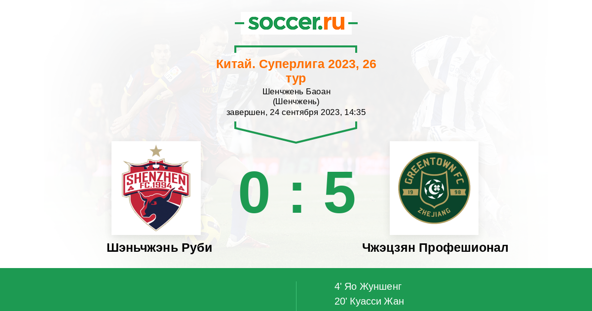 Протокол матча Шэньчжэнь Руби против Чжэцзян Профешионал