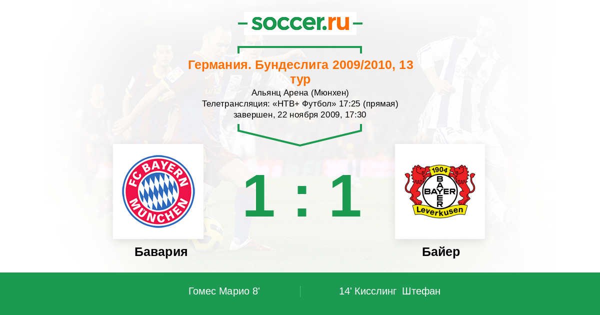 Протокол матча Бавария против Байер