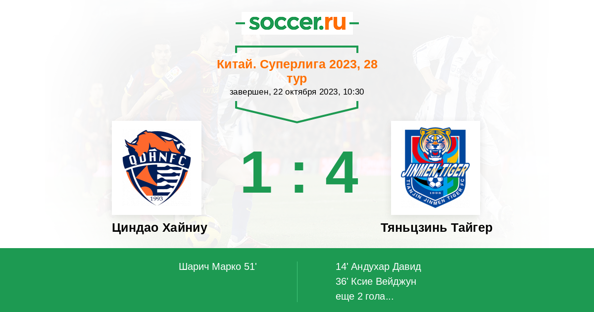 Протокол матча Циндао Хайниу против Тяньцзинь Тайгер