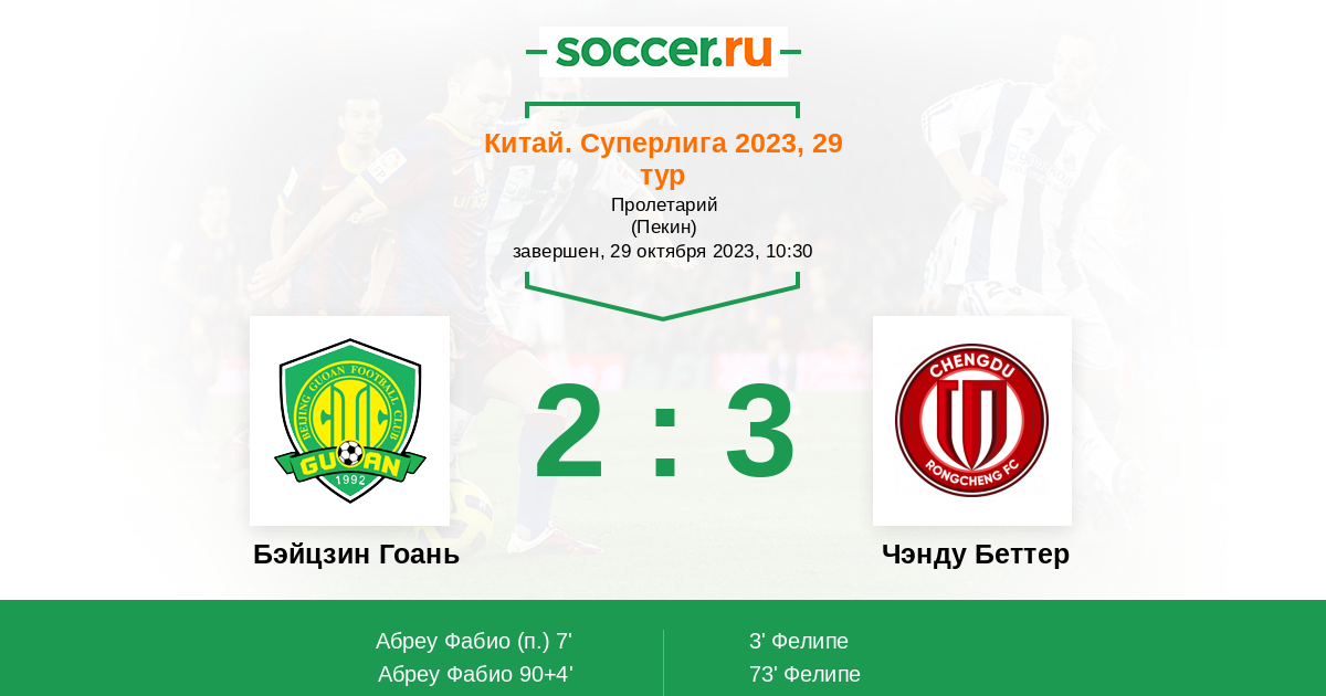 Протокол матча Бэйцзин Гоань против Чэнду Беттер