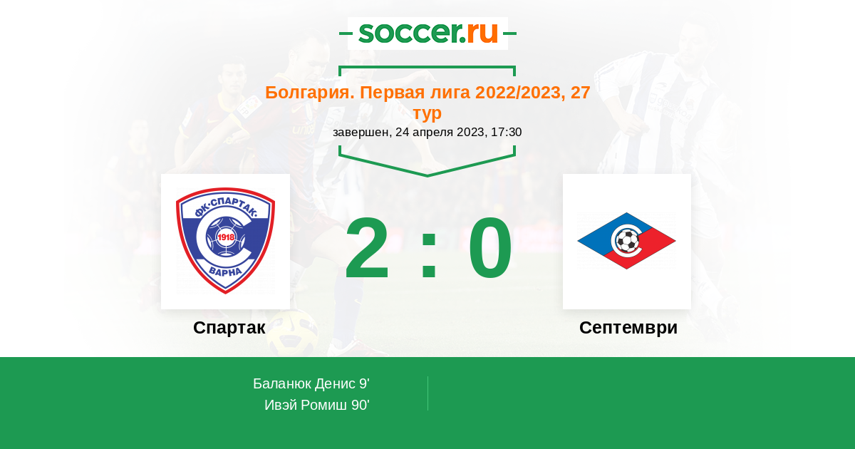 Протокол матча Спартак против Септември