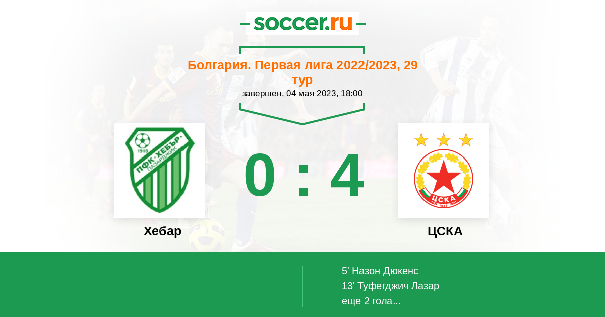 Протокол матча Хебар против ЦСКА