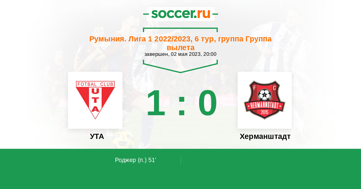 Протокол матча УТА против Херманштадт