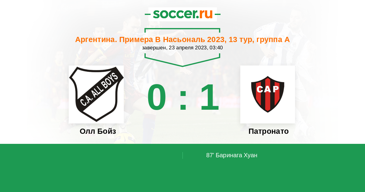 Протокол матча Олл Бойз против Патронато