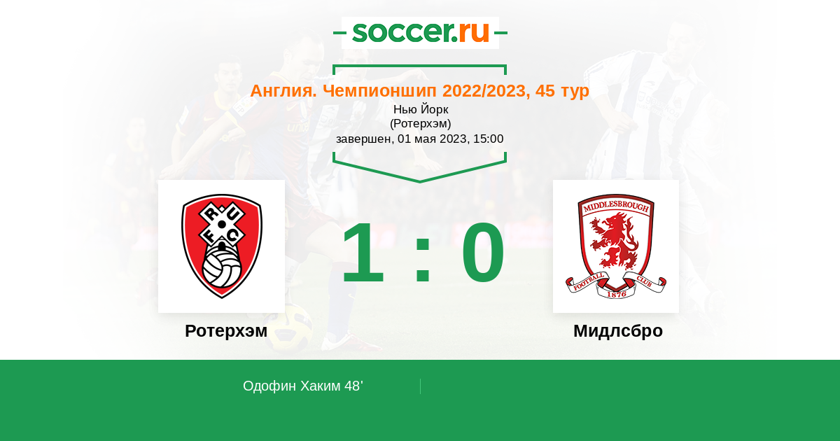Протокол матча Ротерхэм против Мидлсбро