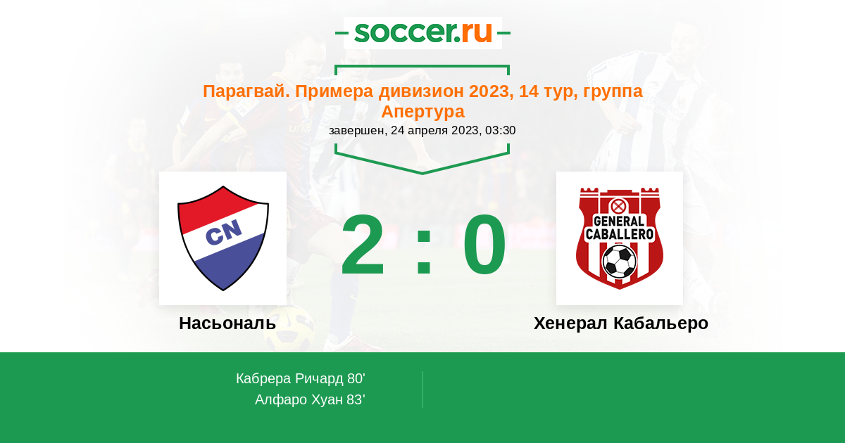 Протокол матча Насьональ против Хенерал Кабальеро