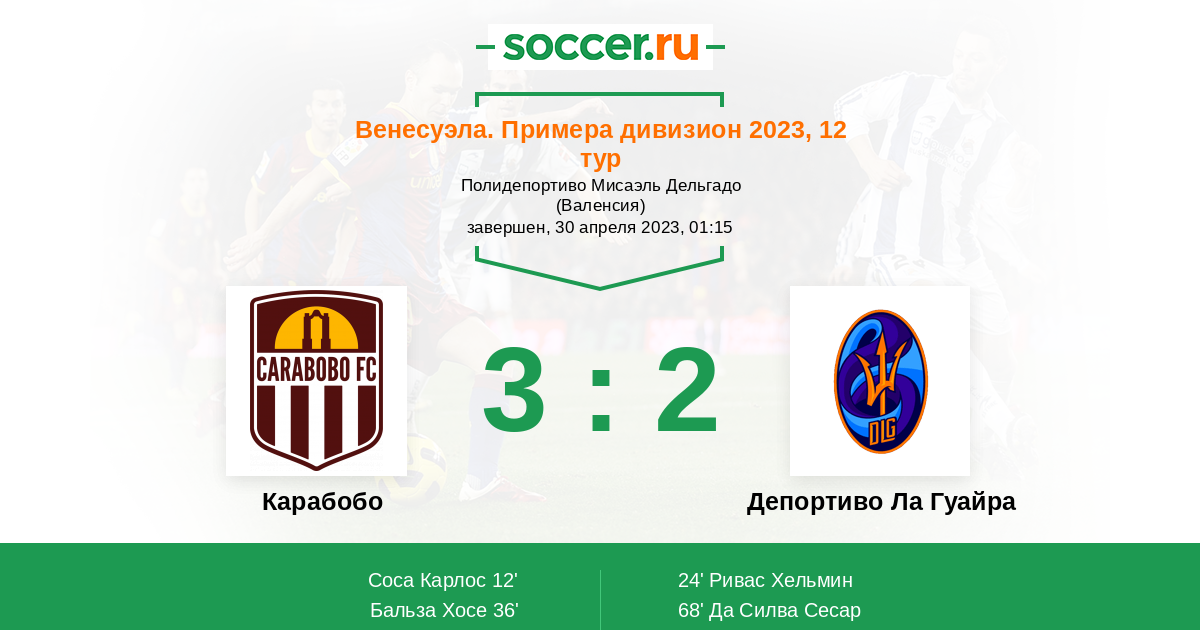 Протокол матча Карабобо против Депортиво Ла Гуайра