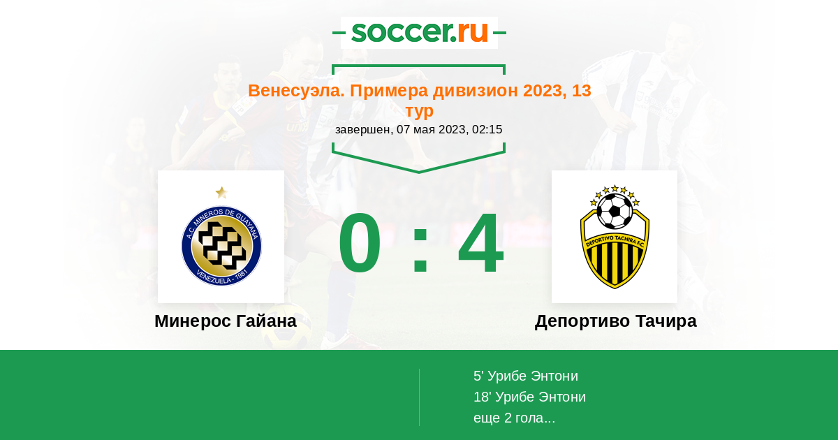18' (0:2) Урибе Энтони (9) (Гонсало Габриел Ритакко (10))
