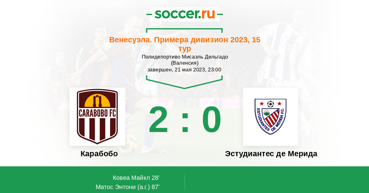Протокол матча Карабобо против Эстудиантес Мерида