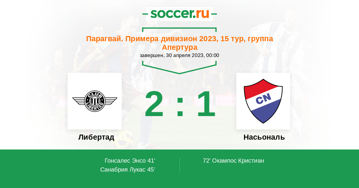 41' (1:0) Гонсалес Энсо (30) (Вильяльба Эктор Даниэль (15))
