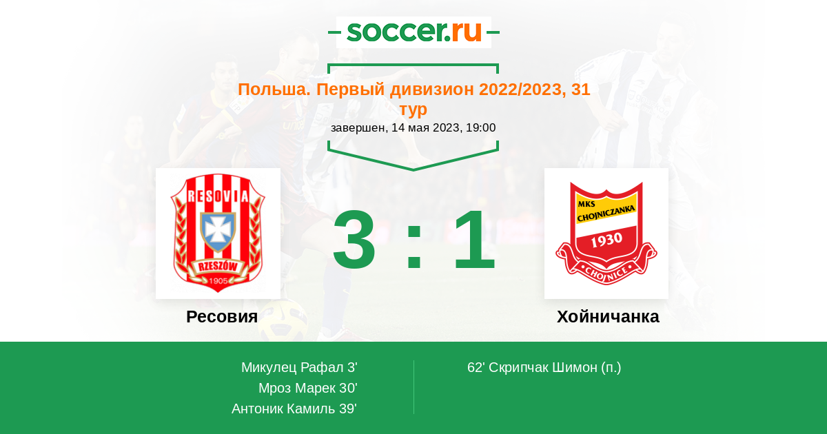 Протокол матча Ресовия против Хойничанка