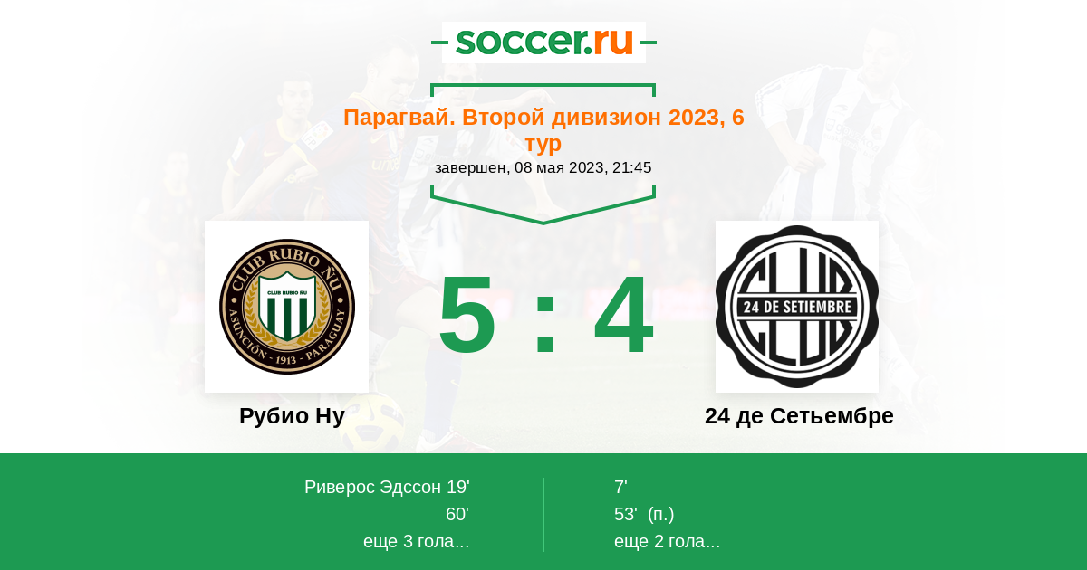 Протокол матча Рубио Ну против 24 де Сетьембре