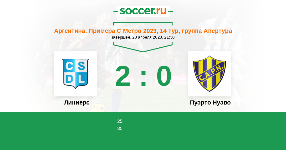 Протокол матча Линиерс против Пуэрто Нуэво