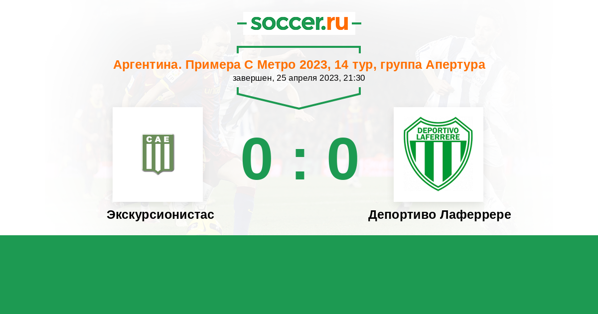Аргентина. Примера С Метро 24.04.2022 Депортиво Лаферрере Логотип футбольный клуб Депортиво Лаферрере 0:0 Логотип футбольный клуб Экскурсионистас (Буэнос-Айрес) Экскурсионистас