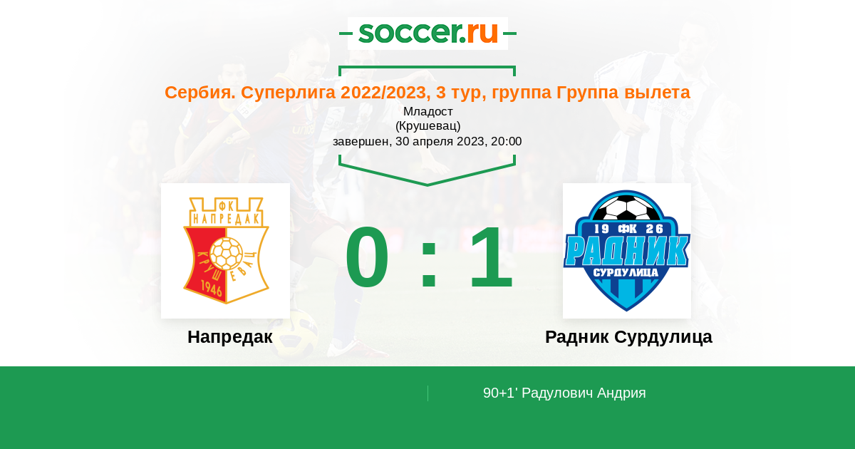 Замена90+2' Радулович Андрия (49) уходит с поля, Богданович Вукашин (18) вышел на поле