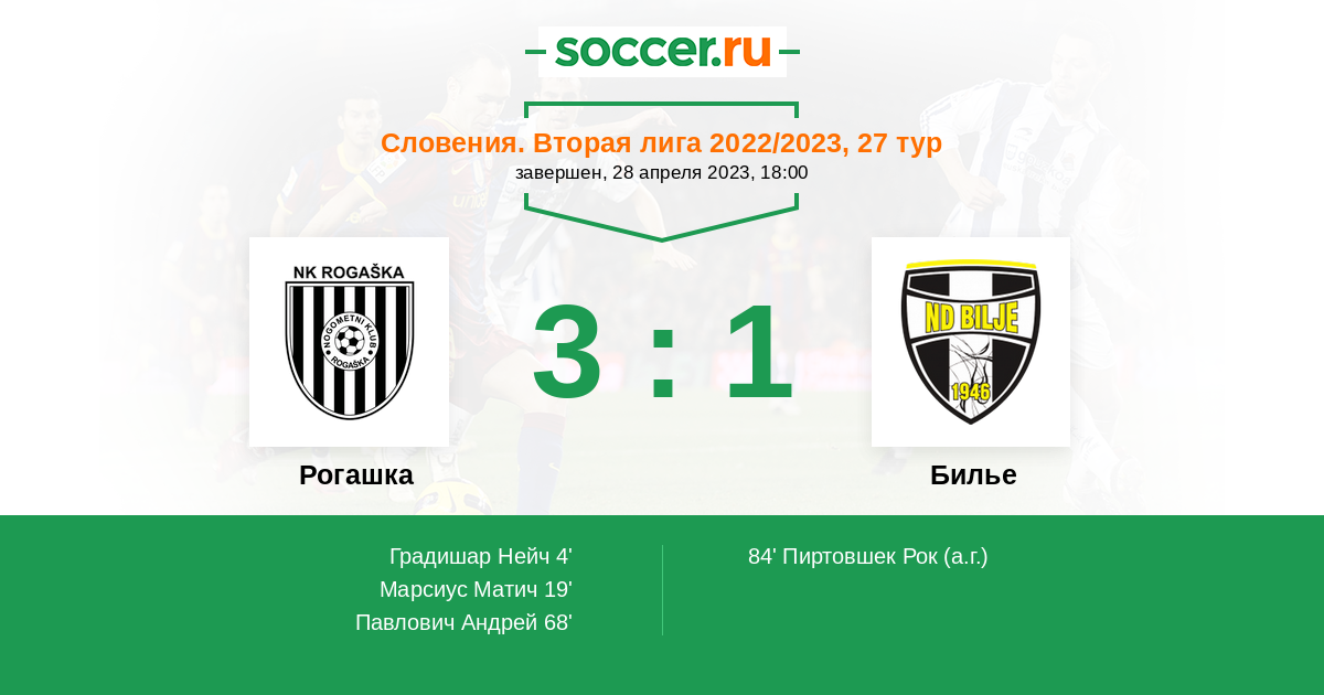 Протокол матча Рогашка против Билье
