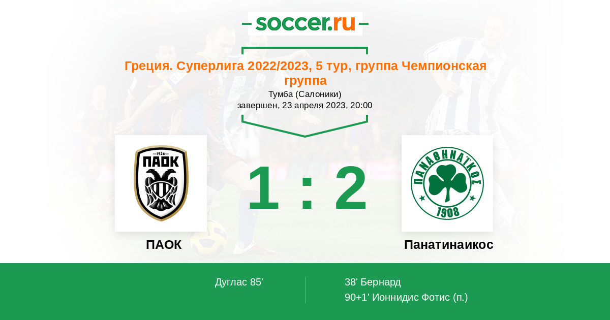 Протокол матча ПАОК против Панатинаикос