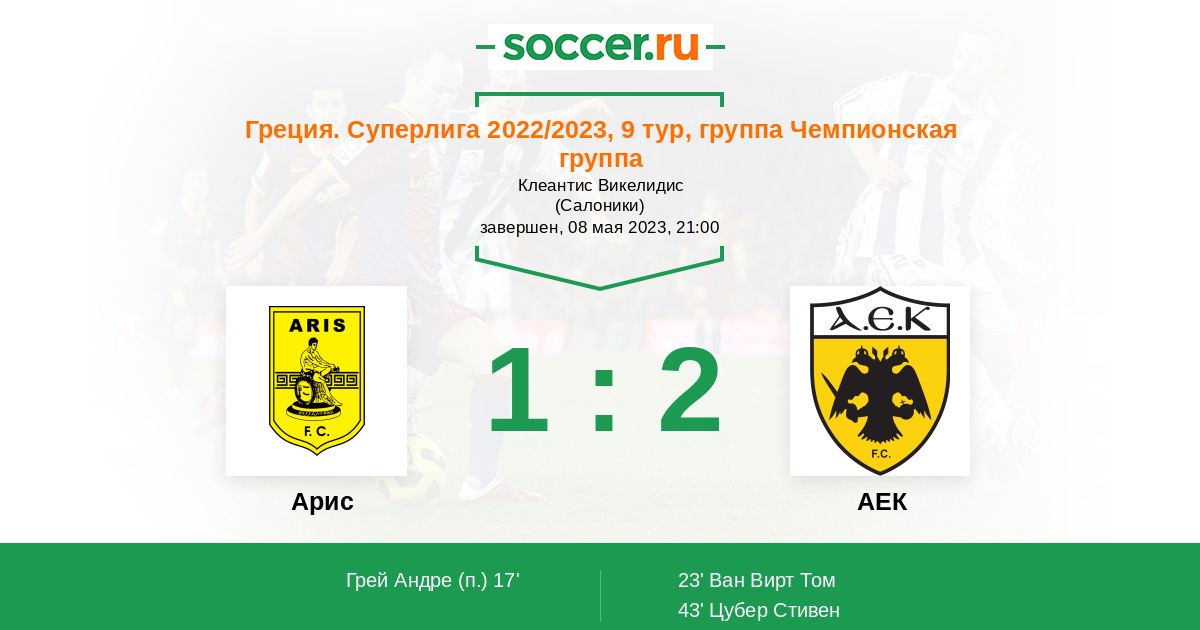 Протокол матча Арис против АЕК