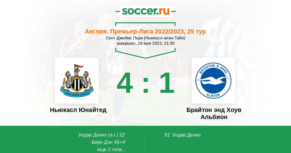 Протокол матча Ньюкасл Юнайтед против Брайтон энд Хоув Альбион