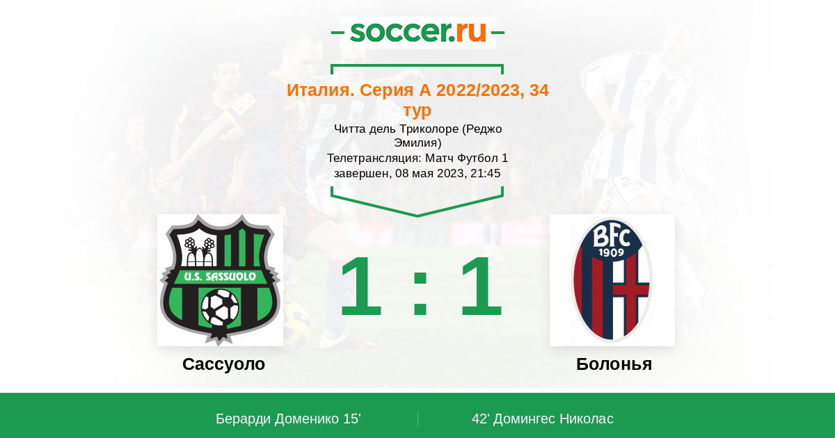 Протокол матча Сассуоло против Болонья
