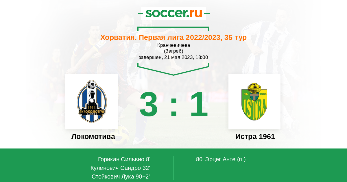 80' (2:1) Эрцег Анте (50)