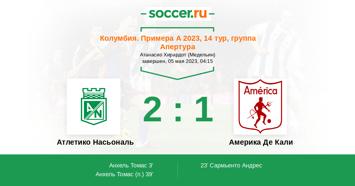 Протокол матча Атлетико Насьональ против Америка Де Кали